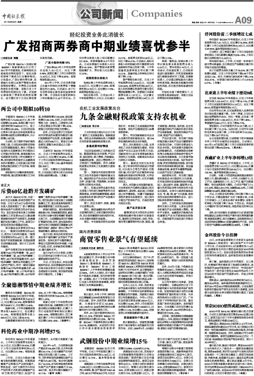 广发招商两券商中期业绩喜忧参半
