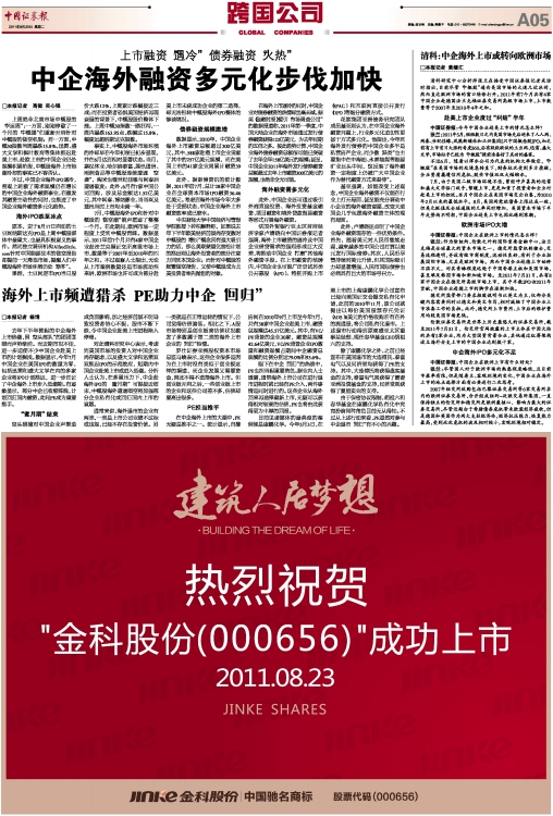 此外,据彭博资讯的统计数据,2011年前7月,总计28家中国企业在全球资本市场IPO融资36.46亿美元。考虑到海外市场今年大多处于受损状态,中国企业海外上市融资效率或已缩水。