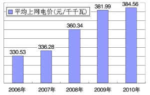 近年来全国平均上网电价变化图