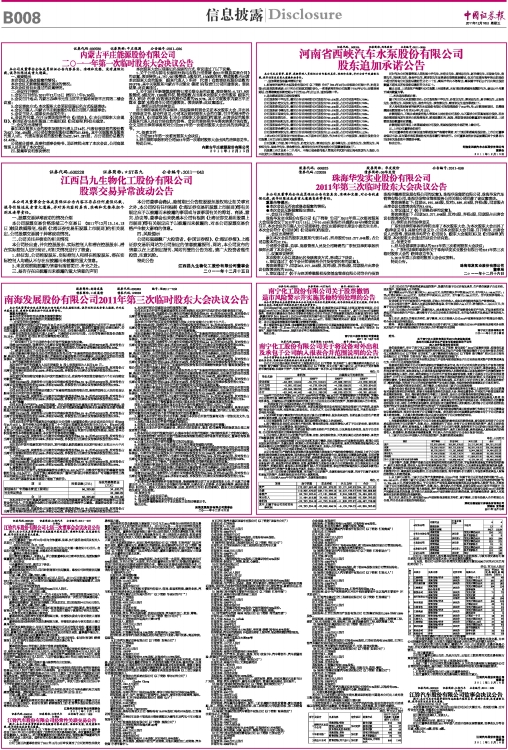 南海发展股份有限公司2011年第三次临时股东大会决议公告