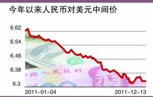 今年以来至11月末,人民币升值幅度逾4%。人民币汇率正向均衡汇率迈进。明年人民币升值步伐将放缓,预计升值幅度在3%以内。