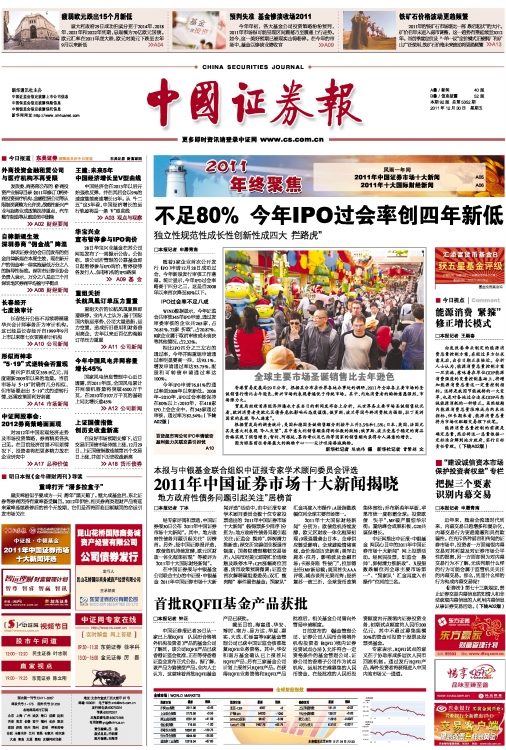 风雨一年间 2011年中国证券市场十大新闻 2011年十大国际财经新闻A05A06