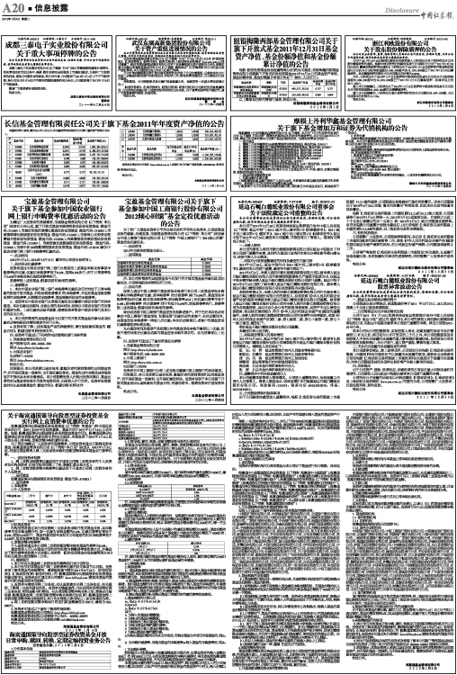 旗下开放式基金2011年度最后一个交易日基金资产净值和基金份额净值的公告