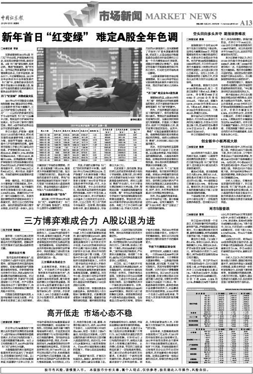 新年首日“红变绿” 难定A股全年色调