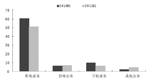公司主营业务为彩电、手机、白电等,其中彩电业务收入占比70%以上,手机和白电各占10%左右。2011年以来,公司再度步入了业绩低谷,前三个季度营业收入同比负增长,净亏损1.56亿元。