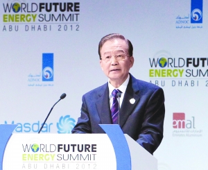 国务院总理温家宝16日出席了在阿布扎比举行的第五届世界未来能源峰会开幕式并致辞。