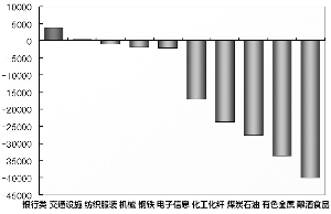 行业板块方面,昨日仅有银行和交通设施板块录得小幅资金净流入,流入额分别为3853.56万元和421.38万元。其余行业板块均遭到不同程度的抛压,其中净流出资金较多的板块有酿酒食品、有色金属和煤炭石油,分别净流出4.00亿元、3.36亿元和2.75亿元。