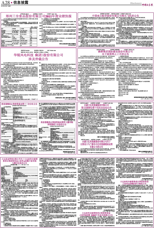 郑州三全食品股份有限公司2011年度业绩快报
