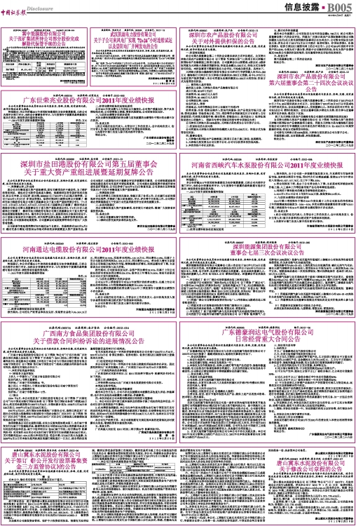河南省西峡汽车水泵股份有限公司2011年度业绩快报