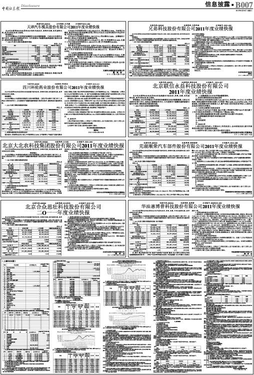 北京大北农科技集团股份有限公司2011年度业绩快报