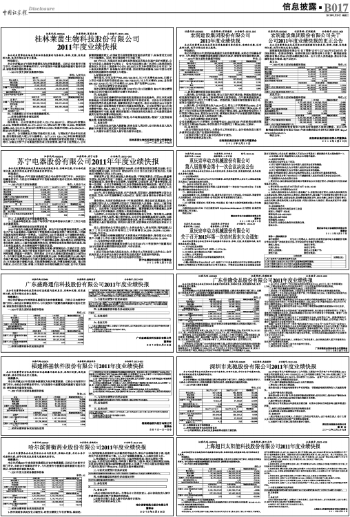 广东盛路通信科技股份有限公司2011年度业绩快报