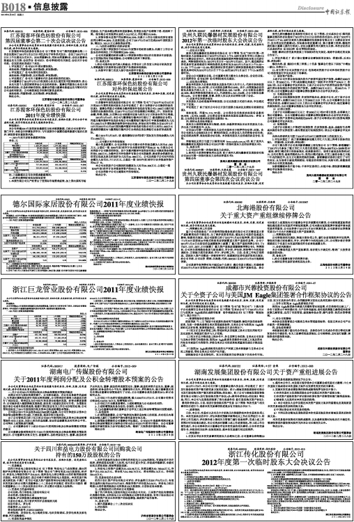 浙江巨龙管业股份有限公司2011年度业绩快报