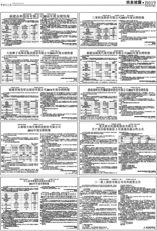 厦门日上车轮集团股份有限公司2011年度业绩快报