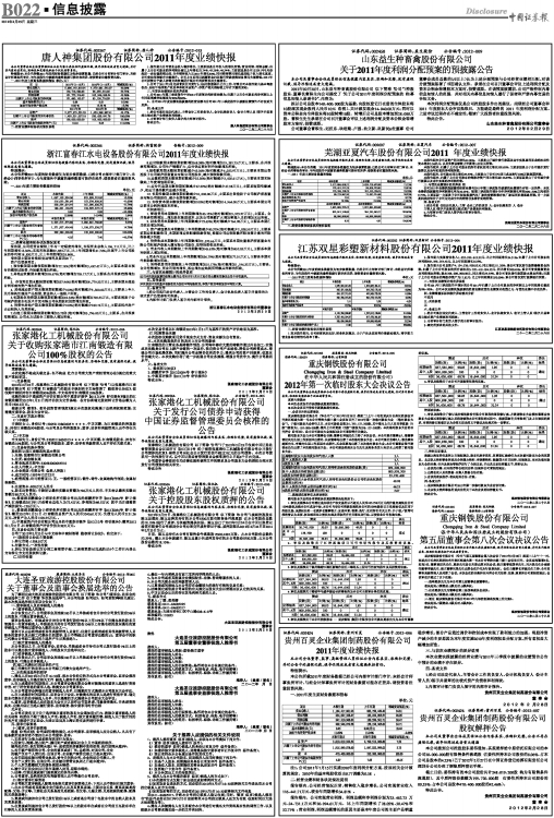 浙江富春江水电设备股份有限公司2011年度业绩快报