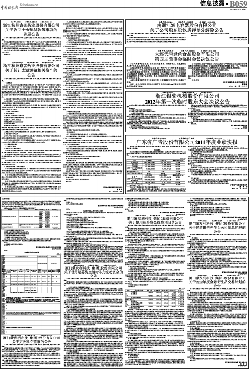 厦门日上车轮集团股份有限公司2011年度业绩快报