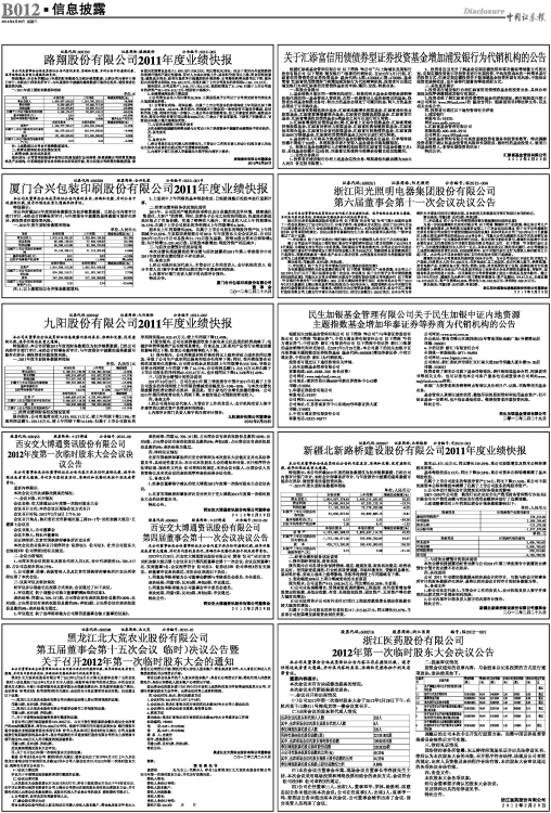 特别提示:本公告所载2011年度的财务数据仅为初步核算数据,已经公司内部审计部门审计,未经会计师事务所审计,与年度报告中披露的最终数据可能存在差异,请投资者注意投资风险。