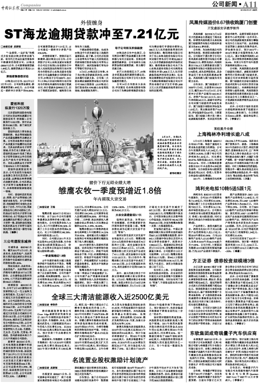 雏鹰农牧一季度预增近1.8倍
