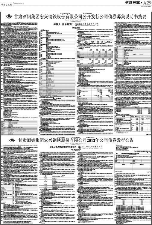 甘肃酒钢集团宏兴钢铁股份有限公司2012年公司债券发行公告