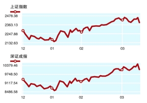 全球市场 WORLD MARKETS 股票市场 沪深300指数 上证综合指数 深证成份指数 创业板指数 香港恒生指数 恒生国企指数 道琼斯工业指数 最新 2605.11 2391.23 10094.89 756.46 21307.89 11300.41 13198.04 涨跌 -75.97 -64.56 -332.35 -35.92 -31.81 -55.87 +20.36 期货市场 连豆-1209 沪铜1205 NYMEX原油 LME3个月铜 最新 4502 60370 106.37 8488.00 涨跌 +8 -300 -0.34 -64.25 债券货币 上证国债指数 中证全债指数 欧元/美元 人民币/美元 最新 132.25 140.19 1.3053 6.3328 涨跌 +0.01 -0.02 -0.0029 -0.0069 本表截至北京时间3月14日 22:30 全球财经指数