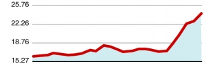 本周涨幅32.55%。其源动力来源于高含权以及产能拓展后的高成长预期。资金的深度介入使得公司股价涨势欲罢不能。