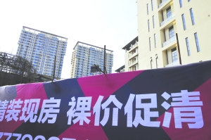 2月25日,北京望京的一个楼盘打出“精装现房、裸价促清”广告。