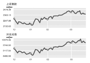 全球市场 WORLD MARKETS 股票市场 沪深300指数 上证综合指数 深证成份指数 创业板指数 香港恒生指数 恒生国企指数 道琼斯工业指数 最新 2583.75 2375.77 10038.95 750.85 20901.56 10767.49 13050.49 涨跌 -4.05 -2.42 -51.48 -0.94 +44.93 -8.51 -74.13 期货市场 连豆-1209 沪铜1206 NYMEX原油 LME3个月铜 最新 4483 59750 105.09 8303.75 涨跌 +15 -520 -2.18 -151.25 债券货币 上证国债指数 中证全债指数 欧元/美元 人民币/美元 本表截至北京时间3月22日 22:30 最新 132.31 140.09 1.3167 6.3004 涨跌 -0.01 +0.02 -0.0045 +0.0088