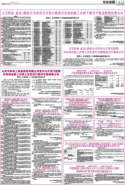 吉艾科技(北京)股份公司首次公开发行股票并在创业板上市网下摇号中签及配售结果公告