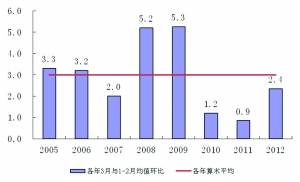 图一 3月份PMI环比前两个月均值