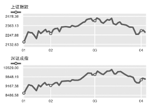 全球市场 WORLD MARKETS 股票市场 沪深300指数 上证综合指数 深证成份指数 创业板指数 香港恒生指数 恒生国企指数 道琼斯工业指数 最新 2495.15 2285.78 9710.91 689.72 20593.00 10744.91 12918.99 涨跌 -24.68 -20.78 -75.28 -12.19 -197.98 -114.58 -148.19 期货市场 连豆-1301 沪铜1207 NYMEX原油 LME3个月铜 最新 4733 59840 101.50 - 涨跌 +13 -230 -1.81 - 债券货币 上证国债指数 中证全债指数 欧元/美元 人民币/美元 最新 132.55 140.46 1.3062 6.3021 涨跌 +0.03 +0.00 -0.0032 +0.0051 本表截至北京时间4月9日 22:30