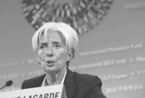 国际货币基金组织总裁拉加德出席媒体发布会。 新华社图片