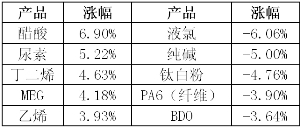 化工品价格涨跌幅