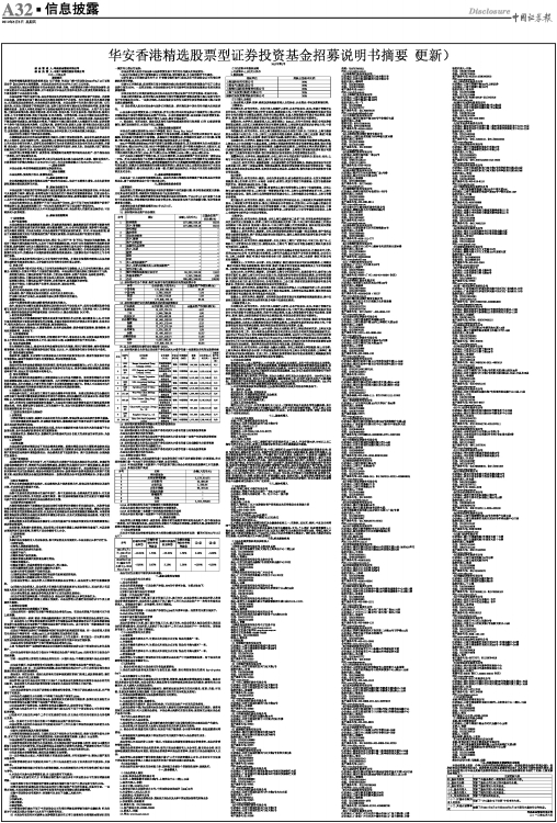华安香港精选股票型证券投资基金招募说明书摘要(更新)