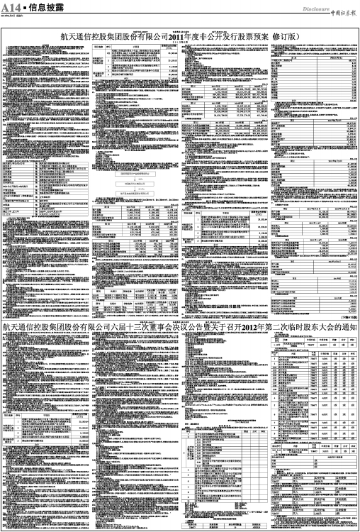 航天通信控股集团股份有限公司2011年度非公开发行股票预案(修订版)