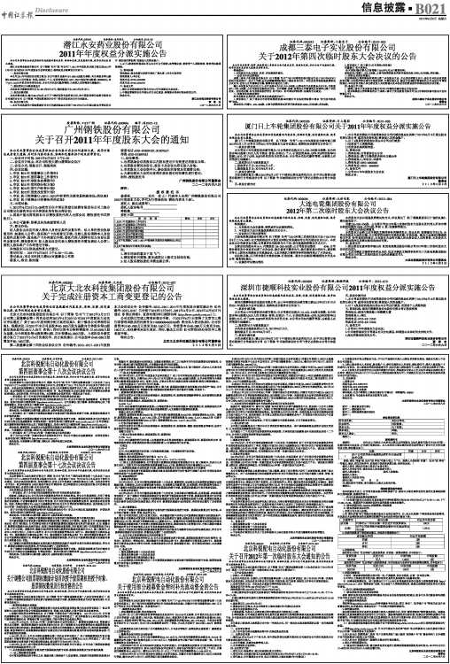 深圳市捷顺科技实业股份有限公司2011年度权益分派实施公告