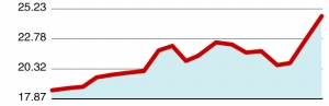 本周涨幅27.4%。该公司实际控制人黄俊钦洗脱4亿元骗贷重罪出狱,意味着公司一度停滞的资产重组方案有重启希望。