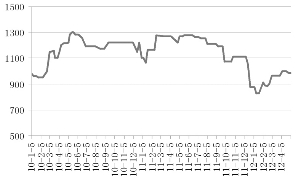 2011/2012榨季的糖蜜价格低开低走(元/吨)