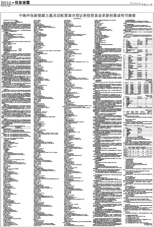 中海环保新能源主题灵活配置混合型证券投资基金更新招募说明书摘要
