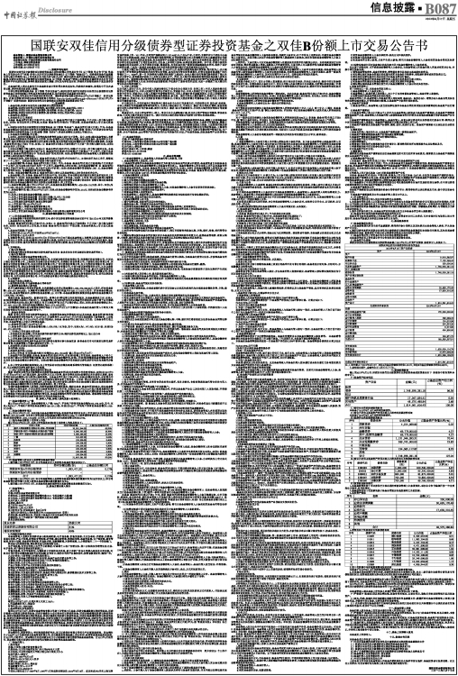 国联安双佳信用分级债券型证券投资基金之双佳B份额上市交易公告书