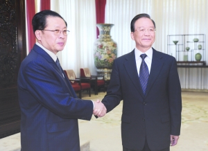 图为温家宝会见张成泽。