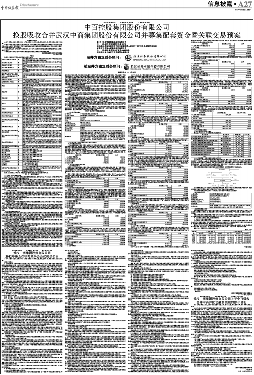 《中百控股集团股份有限公司换股吸收合并武汉中商集团股份有限公司并募集配套资金暨关联交易预案》同日刊登在《中国证券报》、《证券时报》和《上海证券报》以及深圳证券交易所指定信息披露网站巨潮资讯网(http://www.cninfo.com.cn)。
