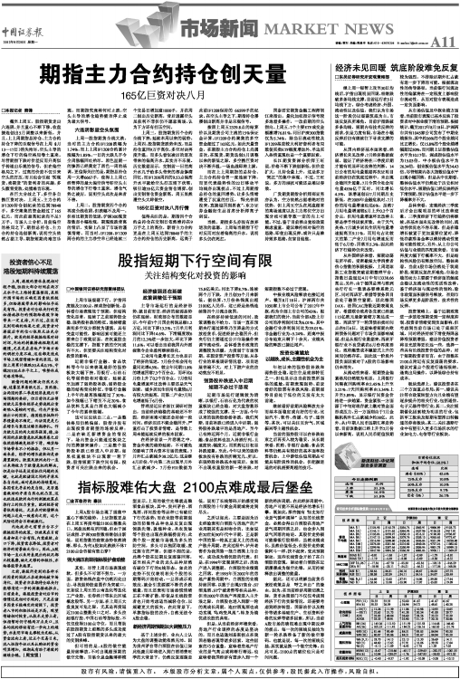 上周市场震荡下行,沪指再度触及2100点,深成指创新低,总体看市场表现低于预期,但结构变化显著,延续了之前弱势股企稳、强势股补跌的特征。连续缩量表明多空双方都较为谨慎,具有变盘可能性,影响因素可能还主要来自于政策层面。在权重股企稳的支撑下,指数下跌的空间或许不大,但更要关注结构变化对投资的影响。