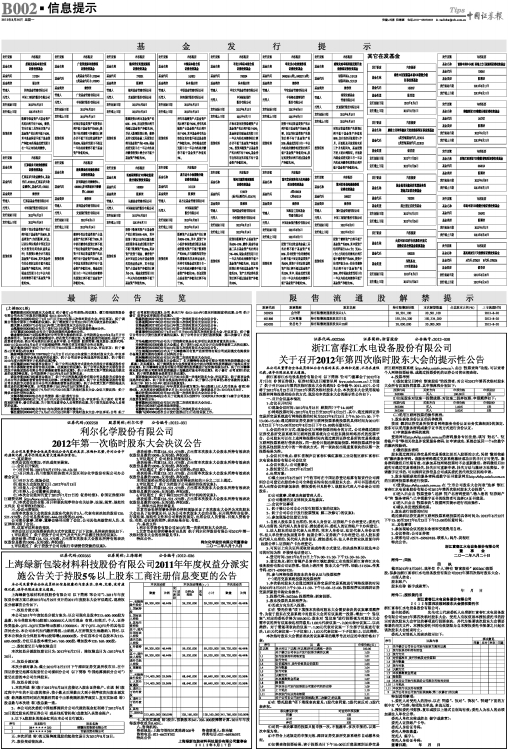 上海绿新包装材料科技股份有限公司(以下简称“本公司”),2011年年度权益分派方案已获2012年6月29日召开的2011年度股东大会审议通过,现将权益分派事宜公告如下:
