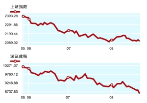 全球市场 WORLD MARKETS 股票市场 沪深300指数 上证综合指数 深证成份指数 创业板指数 香港恒生指数 恒生国企指数 道琼斯工业指数 最新 2295.59 2107.71 8726.02 746.85 19887.78 9698.83 13177.48 涨跌 -18.12 -10.56 -123.47 -2.08 -212.31 -127.12 -26.10 期货市场 连豆-1301 沪铜1212 NYMEX原油 LME3个月铜 最新 4870 55330 97.06 7628 涨跌 +42 +660 +0.22 +43 债券货币 上证国债指数 中证全债指数 欧元/美元 人民币/美元 最新 134.38 143.62 1.2466 6.3348 涨跌 0 -0.22 -0.0003 +0.0070 本表截至北京时间8月22日 22:30