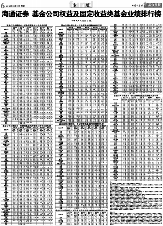 海通证券 基金公司权益及固定收益类基金业绩排行榜