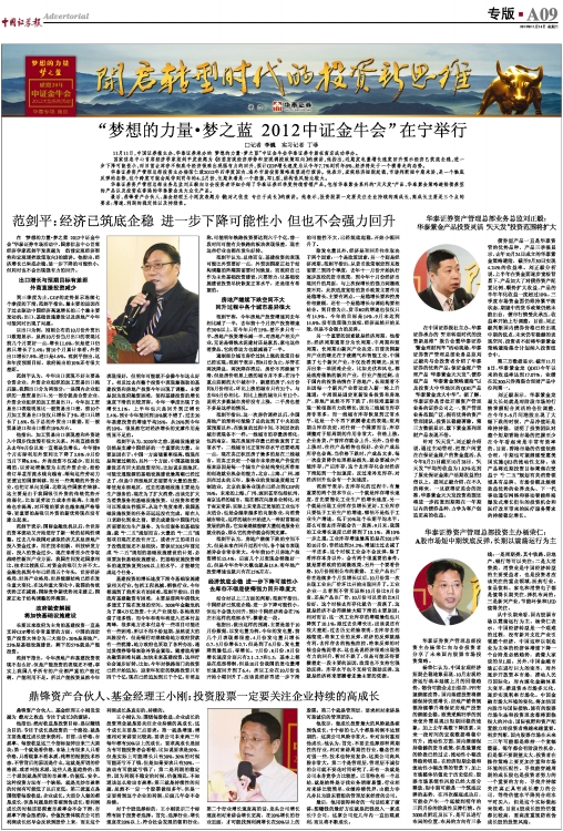 “梦想的力量·梦之蓝 2012中证金牛会”在宁举行