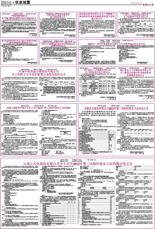 云南云天化股份有限公司关于召开2012年第二次临时股东大会的提示性公告