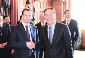中俄能源谈判代表第九次会晤5日在莫斯科举行,国务院副总理、中俄能源谈判中方代表王岐山与俄罗斯副总理、俄方代表德沃尔科维奇共同主持会议。