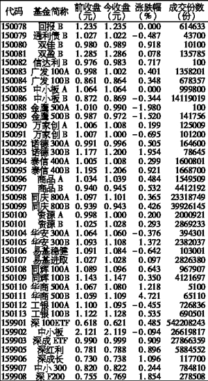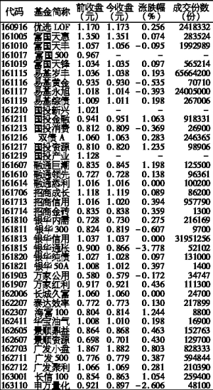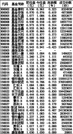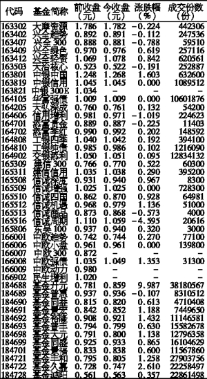 沪深上市基金行情