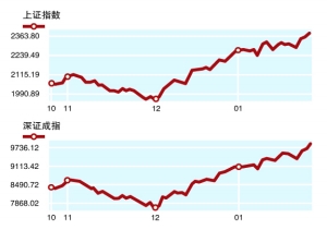 全球财经指数 全球市场 WORLD MARKETS 股票市场 沪深300指数 上证综合指数 深证成份指数 创业板指数 香港恒生指数 恒生国企指数 道琼斯工业指数 最新 2688.71 2382.48 9783.84 783.68 23822.06 12172.24 13950.43 一周涨跌 +12.84 +23.50 +79.18 -7.99 +166.89 +94.37 -3.99 本表截至北京时间1月30日 22:30