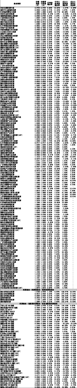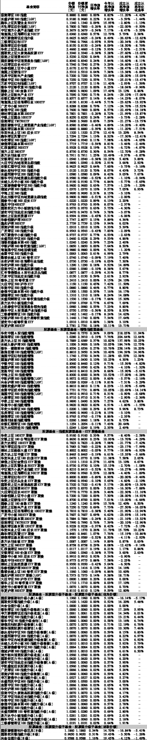 沪深上市基金行情